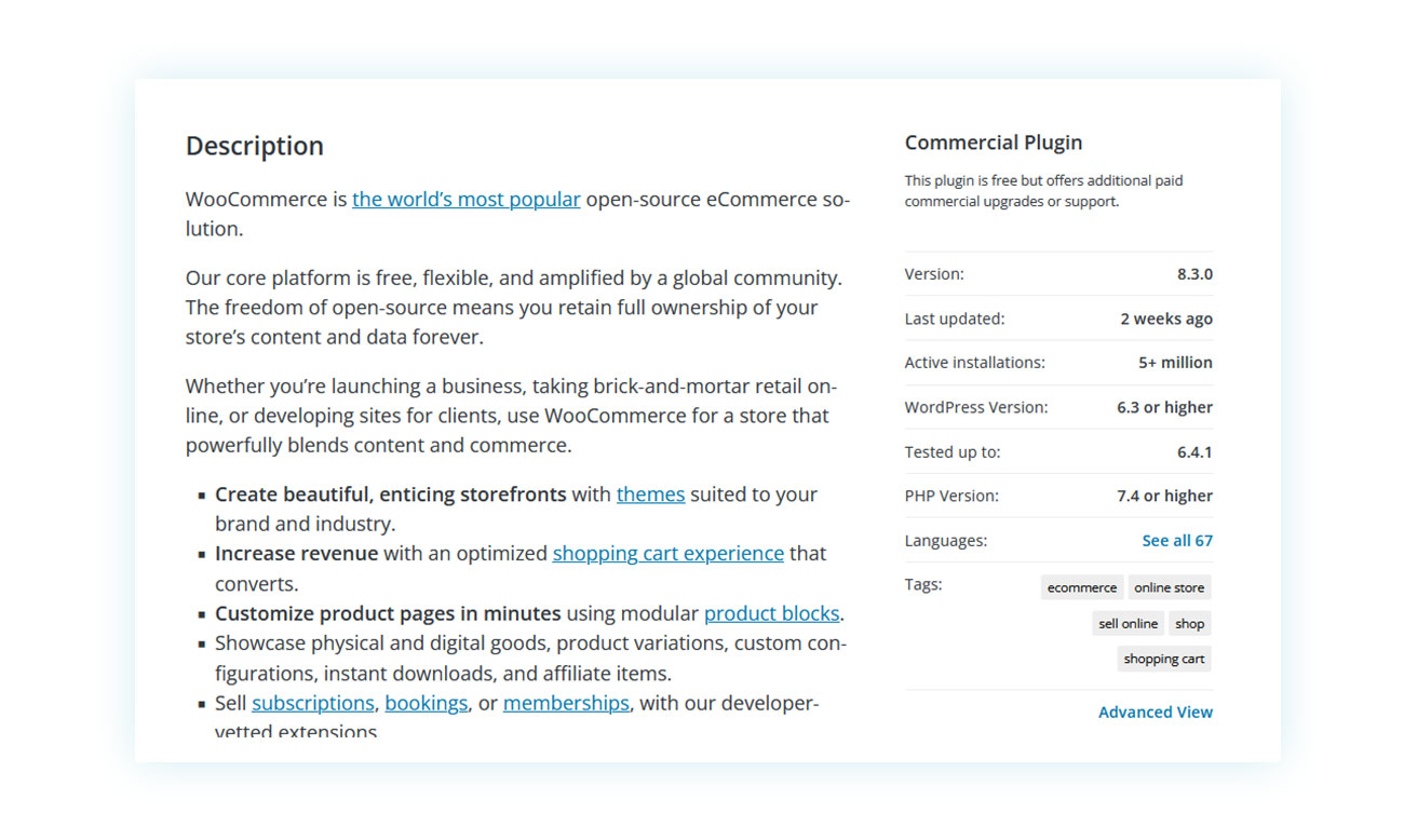 Nel nostro caso, WooCommerce richiede una versione di WordPress pari o superiore alla 6.3. Allo stesso modo, richiede una versione di PHP pari o superiore alla 7.4.