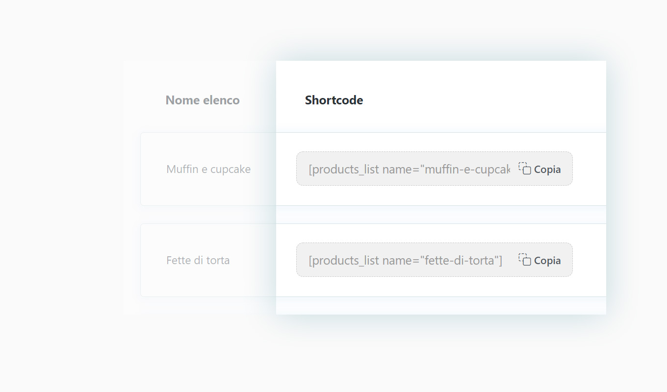 Puoi inserire la lista dei prodotti in qualsiasi pagina copiando e incollando lo shortcode o utilizzare il blocco Gutenberg integrato nel plugin. In entrambi i casi bastano pochi secondi per creare e configurare la pagina.