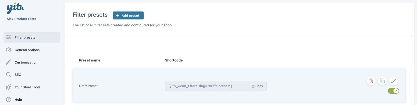 Attiva il preset di default e in pochi secondi (e clic) i filtri saranno funzionanti nel tuo shop